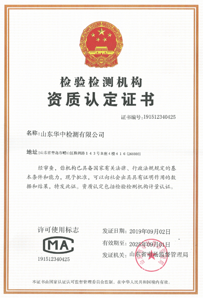 山東華中檢測有限公司,是通過山東省質(zhì)量技術(shù)監(jiān)督局資質(zhì)評審,依法成立的第三方環(huán)境檢測機構(gòu),公司所有設(shè)備通過北京市計量檢測科學研究院計量認證,青島市計量技術(shù)研究院,并取得了檢定合格證書。同時通過了青島市公安局化學品使用備案,可面向社會出具第三方CMA權(quán)威檢測報告,檢測報告在中華人民共和國境內(nèi)具有法律效力。